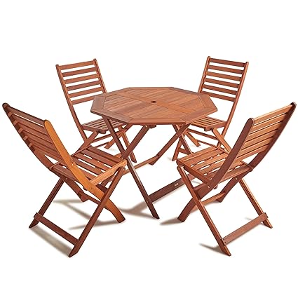 Vonhaus 4 Seater Wooden Dining Set Rustic Octagonal Table And 4 Chair Garden Set Outdoor Furniture 5 Piece Set Made From 100 Hardwood